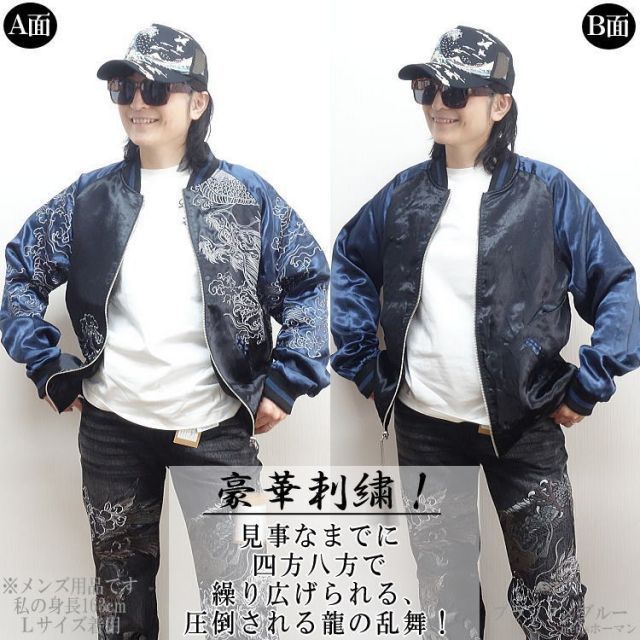 2025年 オールシーズン春夏秋冬物 ビッグ有 絡繰魂|カラクリ魂|からくり魂 粋 送料無料 龍乱舞刺繍 雲 ロゴ 総刺繍 リバーシブル 光沢 和柄カジュアル ブルゾン|スカジャン 黒×袖青 L|XL LL |XXL 3L smtb-k ky 父の日の検索結果
