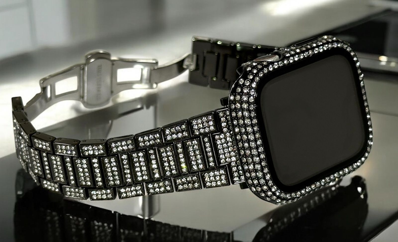 ブラック Apple Watchバンド ステンレスベルト アップルウォッチ画面保護カバー パヴェglassケース キラキラ クリスタル 41mm44mm45mm49mm ultra ウルトラ series10 42mm 46mm MEDICALDB_JP