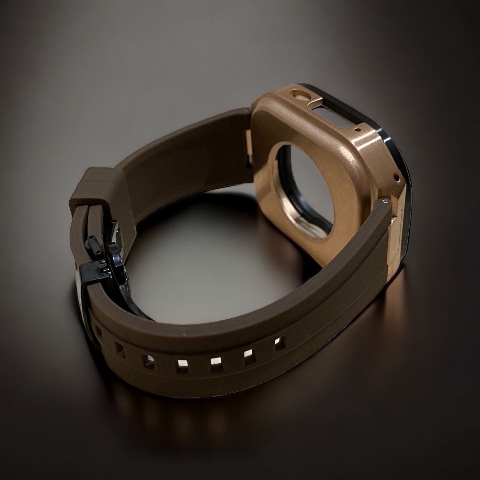 ブラウン×ローズブラック 49mm apple watch ultraアップルウォッチラバーメタルカバーセット ウルトラ 49ミリ用 カスタム ultra2 MEDICALDB_JP
