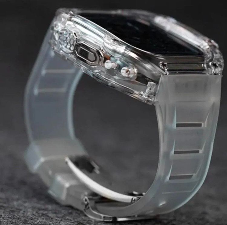 黒 アップルウォッチバンド ラバーベルト カバー 49 mm キラキラ Apple Watch ultra クリア ケース ウルトラ スポーツ メンズ レディース
