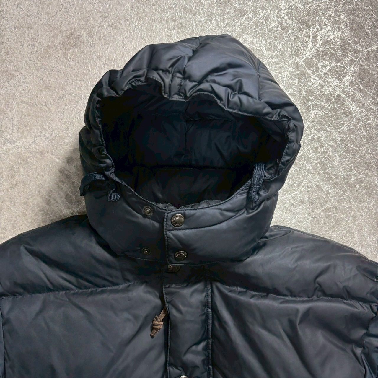 Polo by Ralph Lauren 90s ダウンジャケット ネイビー Lサイズ ラルフローレン フード付き アウター メンズ 古着 ポロ ダウンパファー ビンテージ ロゴ ボリューム 短丈 ドローコード MEDICALDB_JP