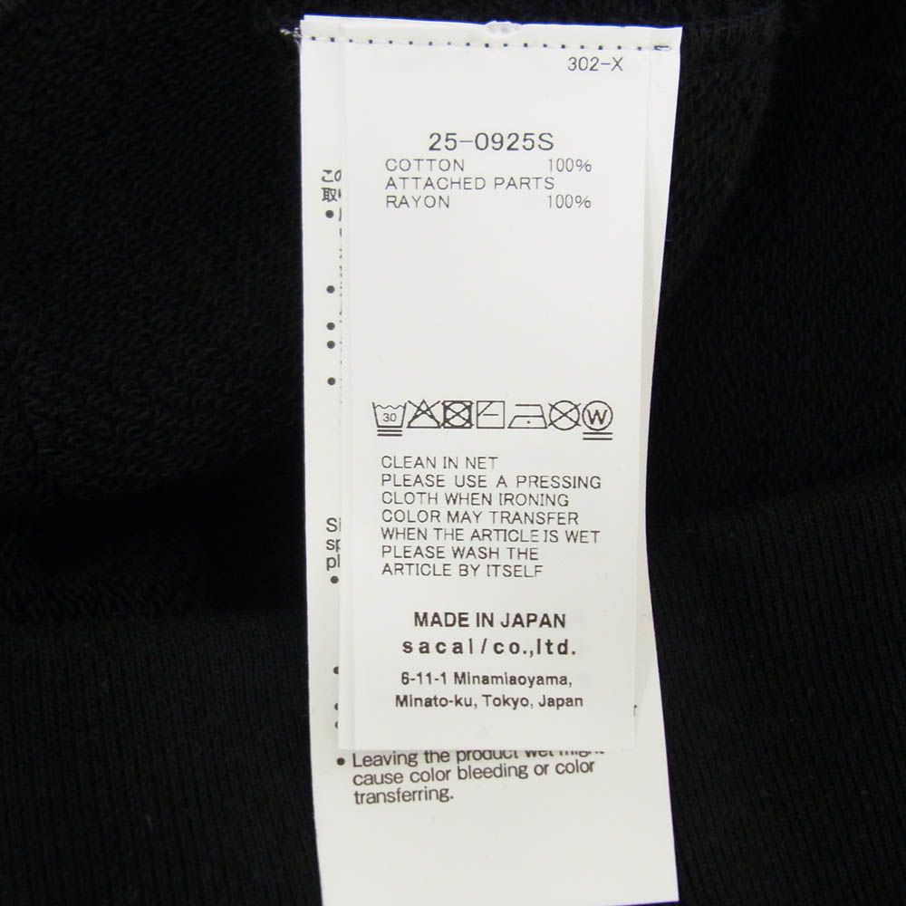 Sacai サカイ 25SS 25-0925S × WTAPS ダブルタップス Flock Print Hoodie フロック プリント フーディー プルオーバーパーカー ブラック系 3の検索結果