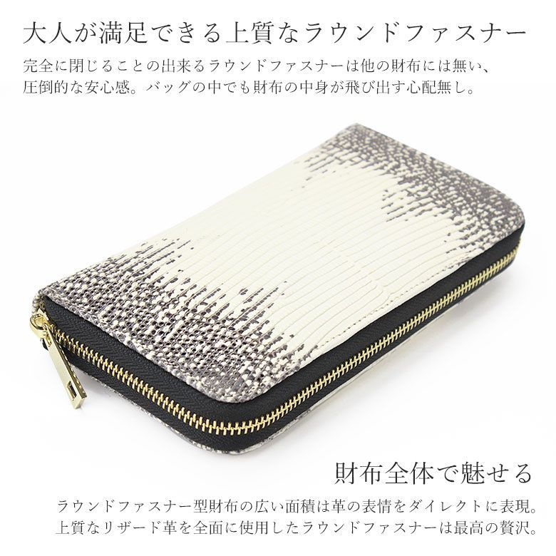 財布 メンズ 長財布 ラウンドファスナー レザー レザー財布 革 本革 リザード トカゲ おしゃれ かっこいい メンズ 20代 30代 40代 人気 ファスナー 白 ホワイト 黒 ブラック 金 ゴールド 大容量 MEDICALDB_JP