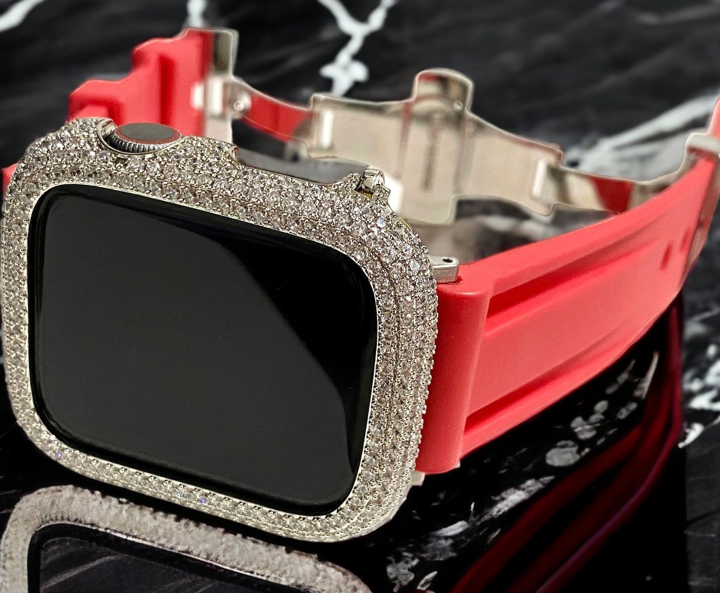 シルバー×レッド 超 パブェ Apple Watch キラキラ カバー ケース ラバー バンド ベルトの検索結果