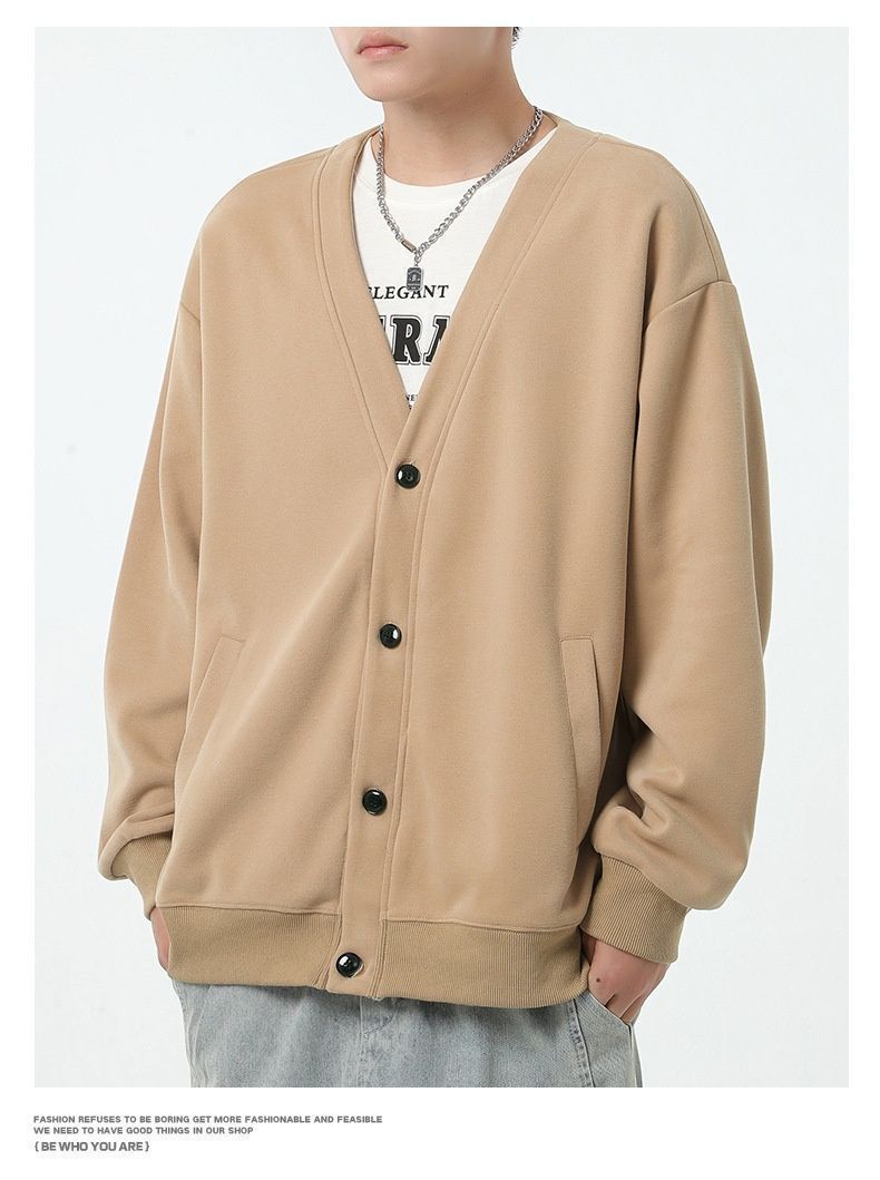 カーディガン ♥ スウェット Vネック 無地 春 秋 カットソー メンズ アウター ジャケット 羽織り ゆったり レイヤード トップス 長袖 体型カバー シンプル リラックス おしゃれ hjfs333 MEDICALDB_JP