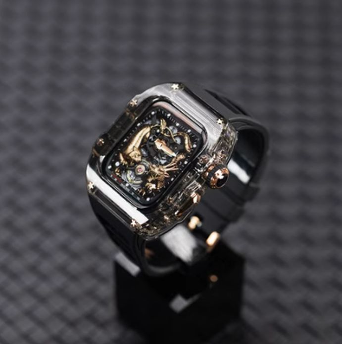 クリア-ブラック ローズ アップルウォッチバンド ラバーベルト カバー Apple Watch クリア ケース 44mm 45mm 4 5 6 7 8 9 se スポーツ メンズ レディース