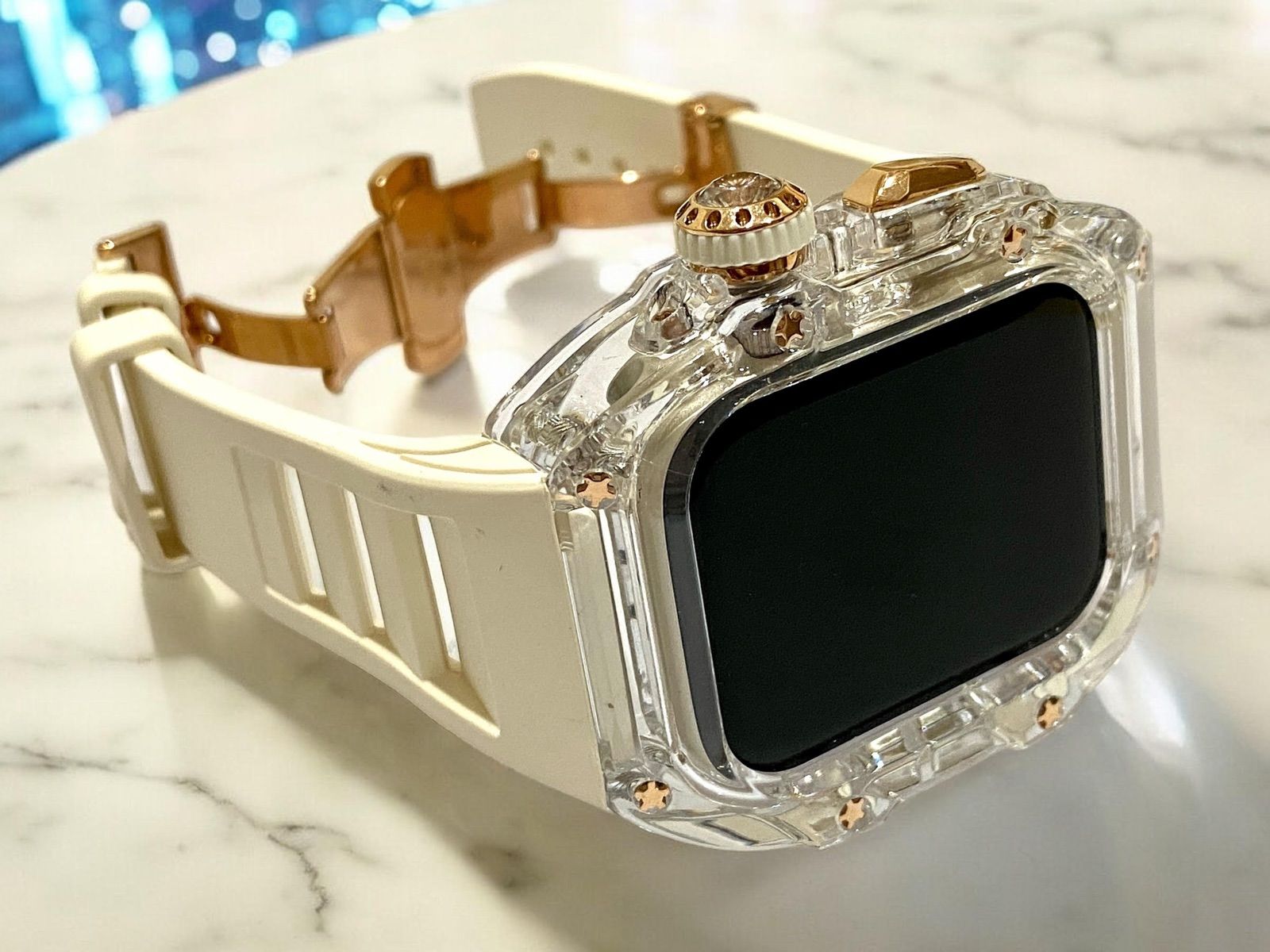 白 アップルウォッチバンド ラバーベルト カバー キラキラ Apple Watch クリア ケース 44mm 45mm スポーツ メンズ レディース
