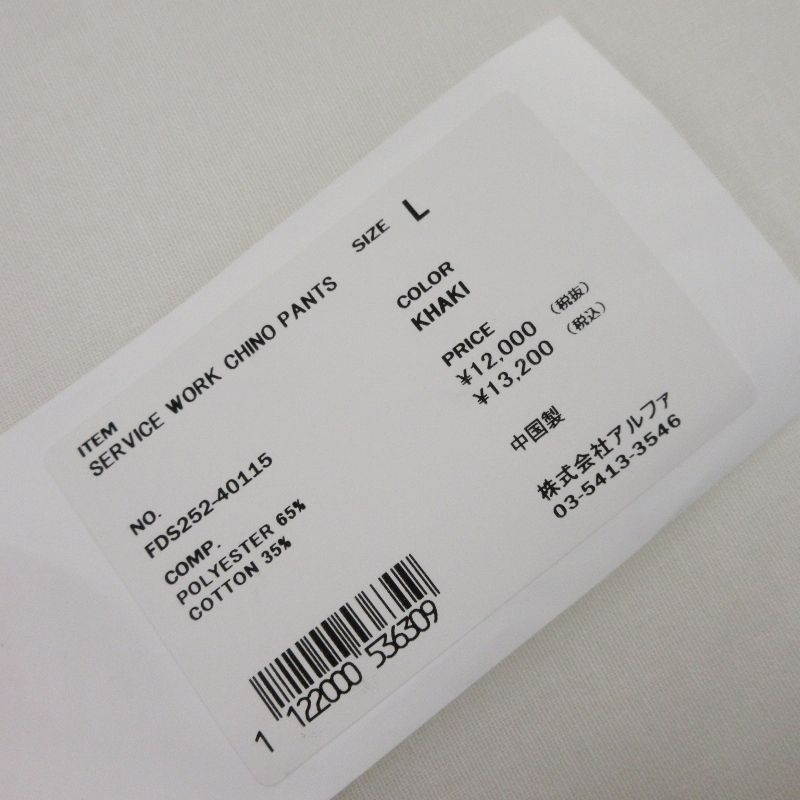 FreshService フレッシュサービス SERVICE WORK CHINO PANTS FDS252-40115 サービスワークチノ カーキ L タグ付き 70017067の検索結果