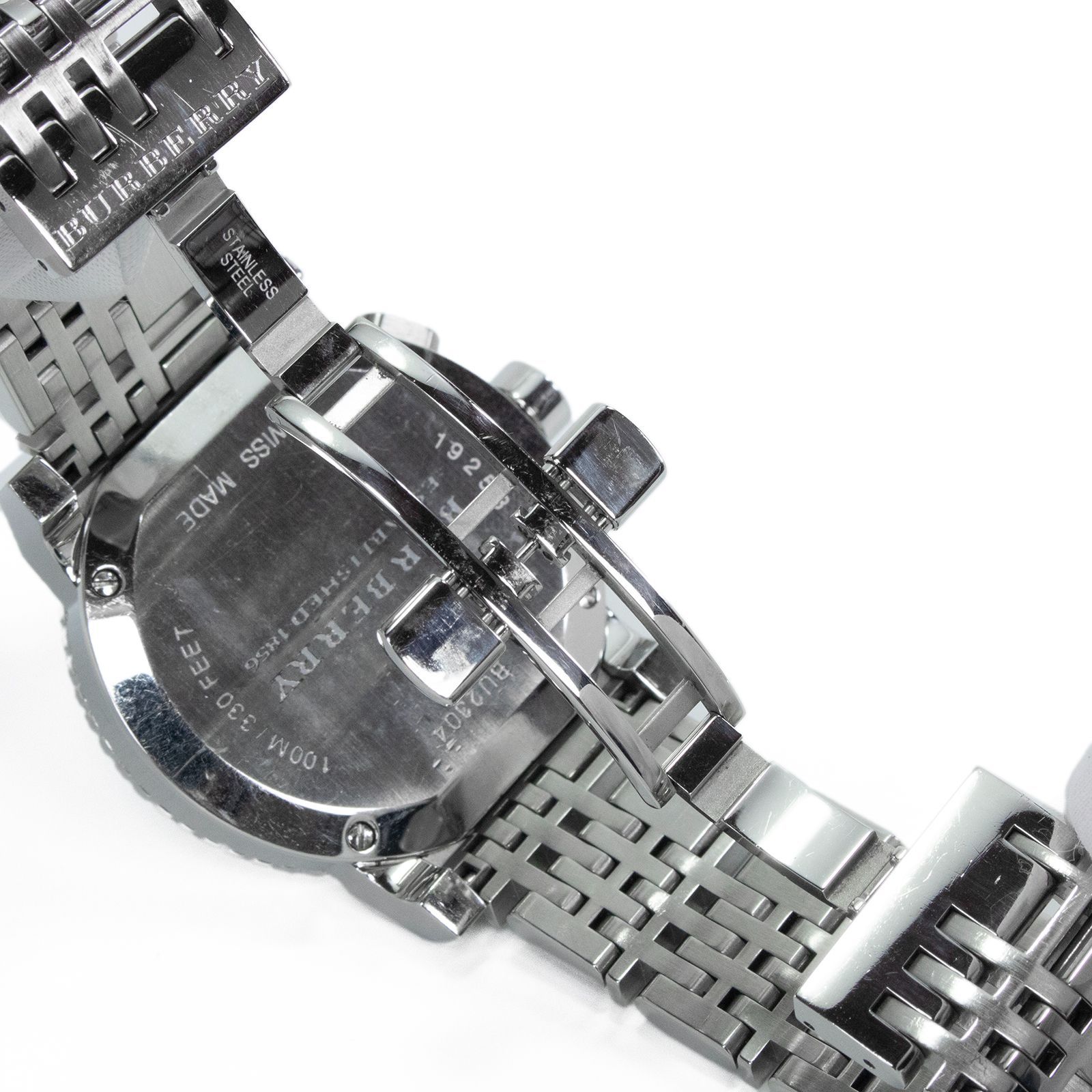 送料無料 バーバリー 腕時計 クォーツ メンズ BU2304 黒 ブラック シルバー クロノグラフ チェック ロゴ アナログ スモールセコンド スモセコ メタルブレスレット 大きい 大型 ブランド 輸入モデル 珍しい 人気 おしゃれ スイス製 X370 MEDICALDB_JP