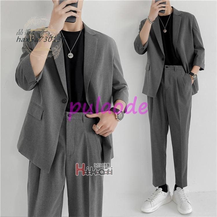 カジュアルスーツ メンズ 韓国 ファッション 七分袖 スーツ セットアップ ゆったり カジュアル 2ピース テーラード 春夏秋 ビジネス hax5a730134 MEDICALDB_JP