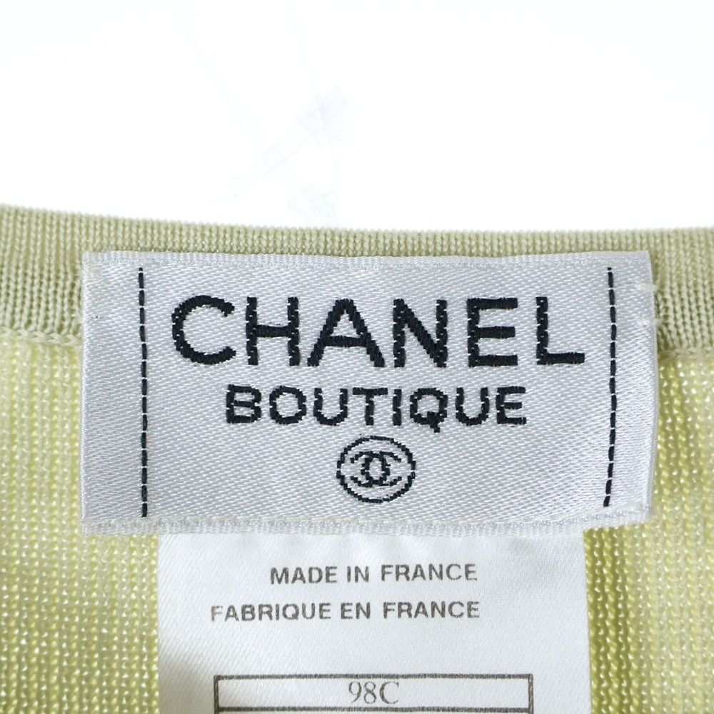 CHANEL シャネル 98C クルーズコレクション ココマーク刺繍 アンサンブル コットン ノースリーブ クルーネック ニット ロングスリーブ カーディガン ライトグリーン P10154V00428 MEDICALDB_JP