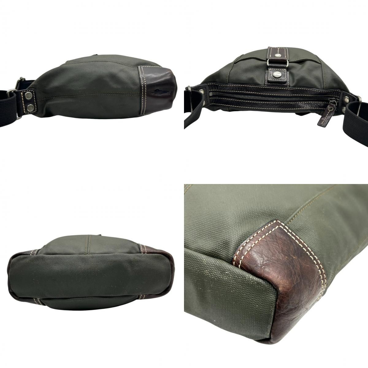 タケオキクチ TAKEO KIKUCHI ショルダーバッグ ナイロン レザー モスグリーン ブラウン メンズ 斜め掛け ACE社製 軽量 カジュアル ビジネス 通勤 通学 スタイリッシュ 機能的 クリーニング済み s39 MEDICALDB_JP