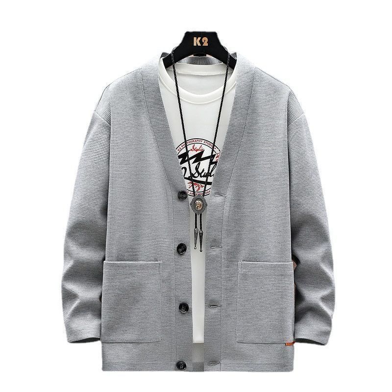 ワッフル 即 OK カーディガン Vネック ポケット付き 無地 春 秋 トップス 長袖 体型カバー メンズ アウター ジャケット 羽織り スウェット カットソー ゆったり レイヤード シンプル hjfs340 MEDICALDB_JP