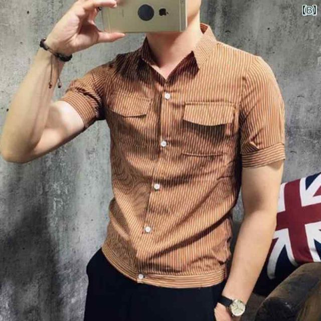 フリーサイズ メンズ ファッション 服 オシャレ シンプル 大人 かっこいい 大きいサイズ ストリート 紳士服 シャツ 半袖 ストライプ 夏 カジュアル スリム シャツ MEDICALDB_JP