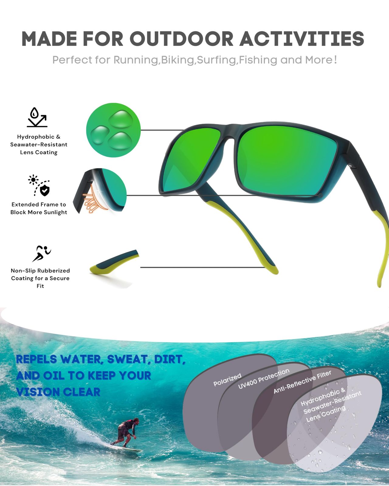PRIVEL XXL サイズ 特大 159mm スポーツ偏光サングラス ビッグワイドヘッド メンズ TR90 アウトドア サイクリング ランニング 釣り ラバークリアダークグレー|偏光ブルーミラー Ext ラバークリアダークグレー|偏光ブルーミラー MEDICALDB_JP