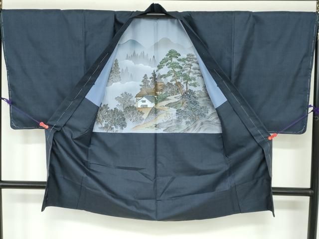 平和屋着物 上 男性 髭紬 アンサンブル 長羽織 濃い紫黒色地 羽裏 龍 ♥ DZAA9201kh5