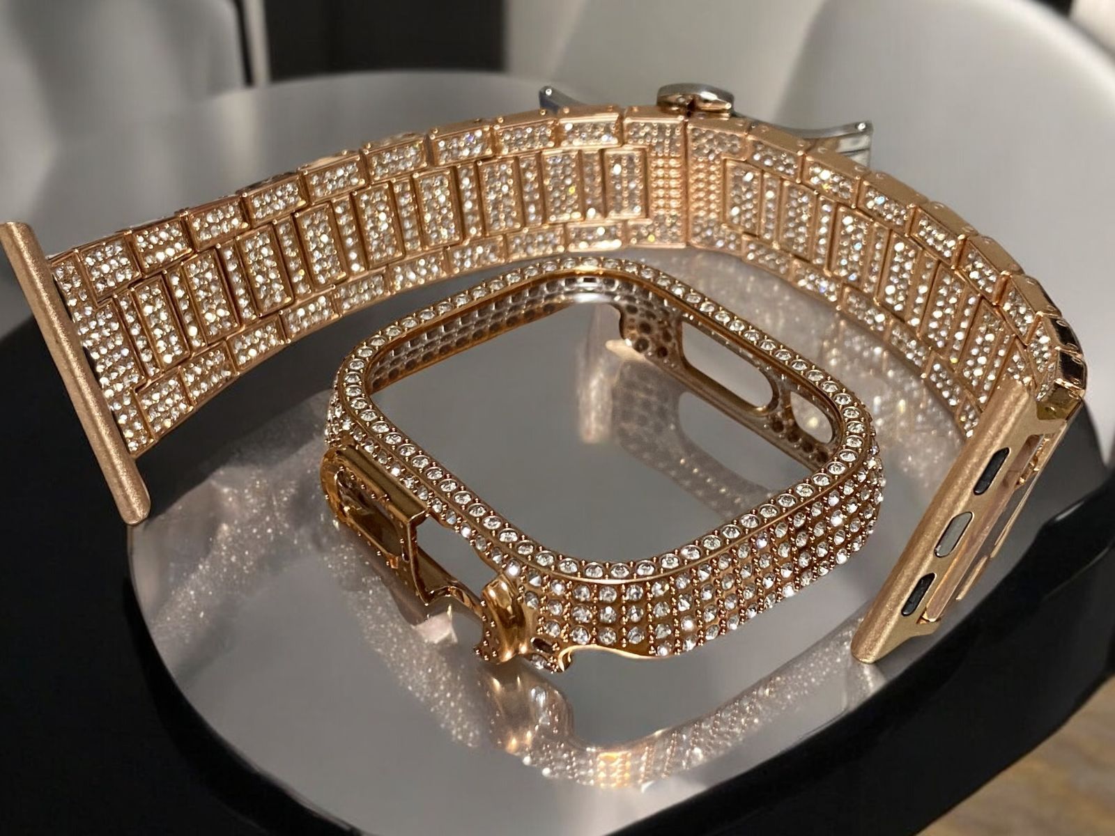 ローズゴールド カバーベルト調整器セットBox付き ステンレスベルト Apple Watch キラキラ アップルウォッチステンレス バンド ケース ultra 49mm