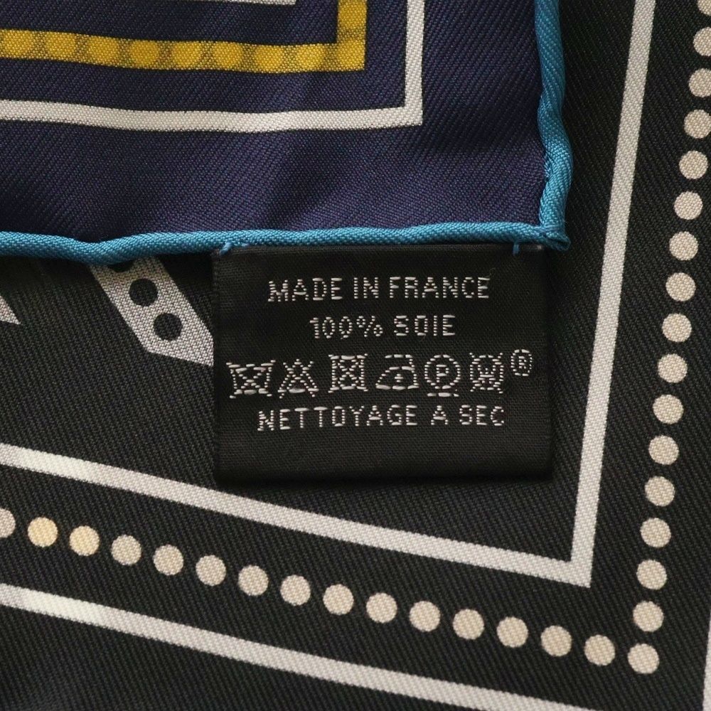 HERMES エルメス カレ90 ダブルフェイス Couvertures et Tenues de Jour 馬着 スカーフ ブルー×ブラック シルク MEDICALDB_JP