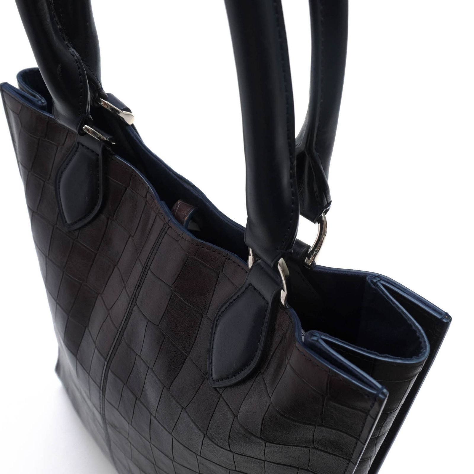 XSサイズ 迫力のクロコ型押レザー小型ミニトートバッグ 日本製 ブラック黒