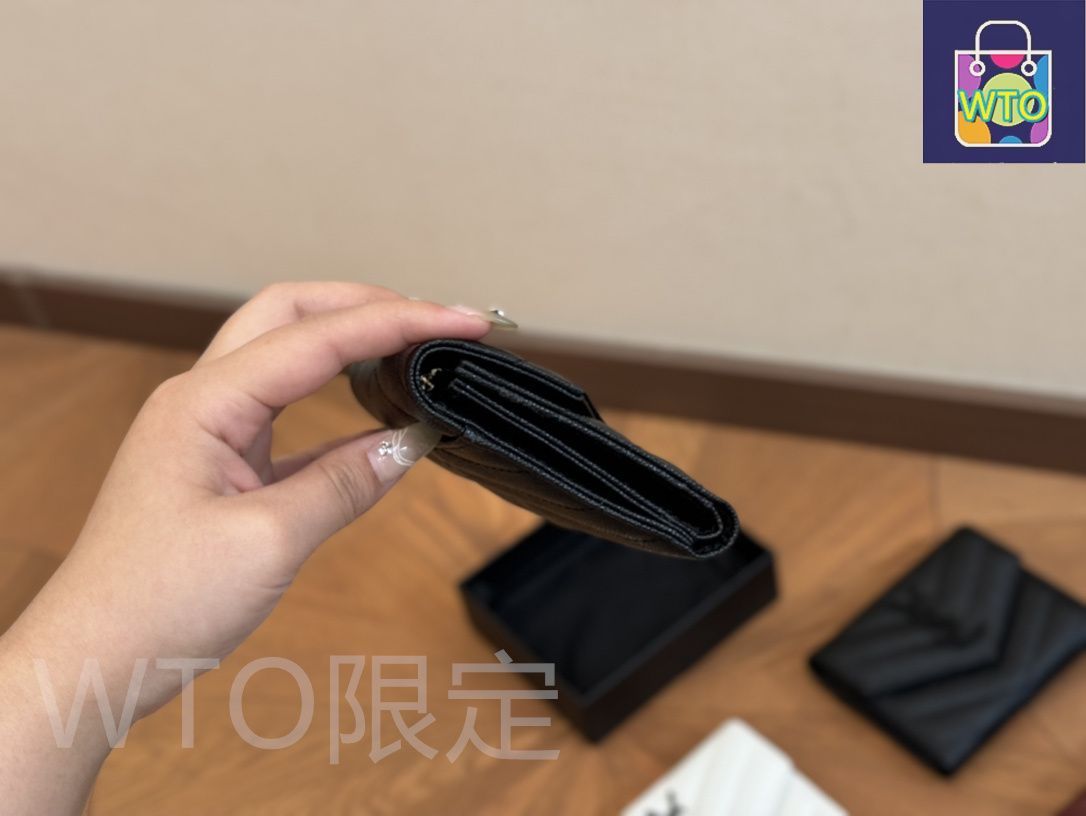 イヴ?サンローラン キャビアレザー ミディアムウォレット 13×9cm フルレザー ボックス付き | ♥品