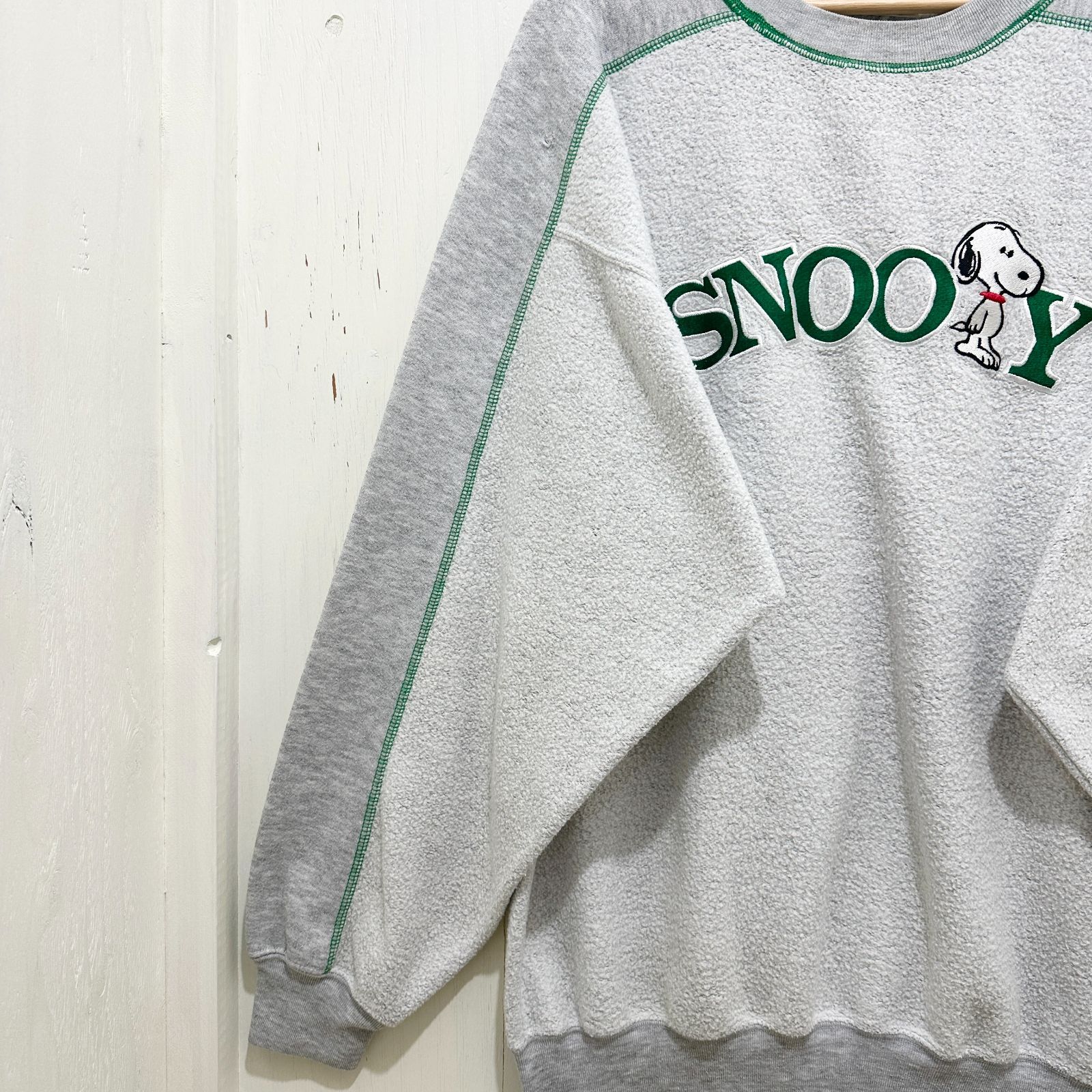 90s SNOOPY スヌーピー 刺繍スウェット ヴィンテージ オーバーサイズ ビッグシルエット ゆるダボ キャラクタースウェット XL グレー 灰色 古着 ユーズド MEDICALDB_JP