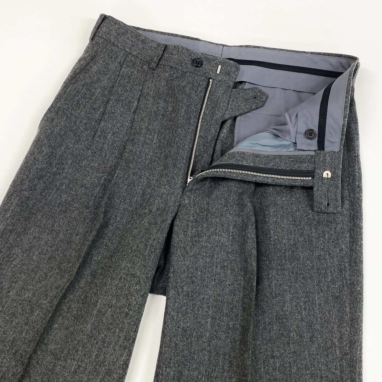 セオリー Theory セットアップ スーツ ストライプ柄 テーラード ジャケット ロングパンツ スラックス 背抜き ジップフライ 38 30 灰系 グレー 毛 ウール 裏地
