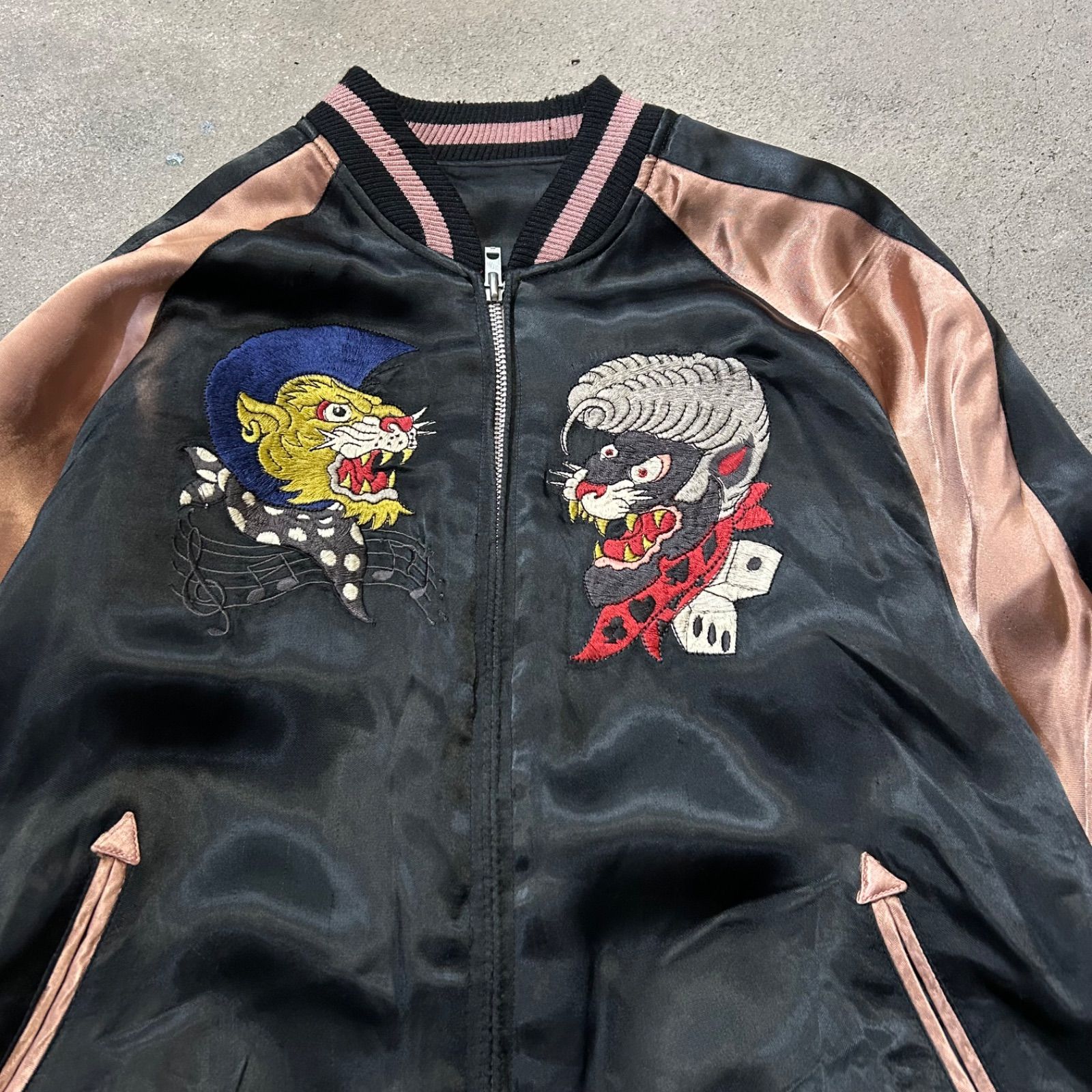 テーラートーヨー TAILOR TOYO 東洋 リバーシブルサテンスカジャン ブルゾン ジャケット アウター ショート丈 刺繍 ウール混 S 黒 ブラック ピンク TT12556 |BB