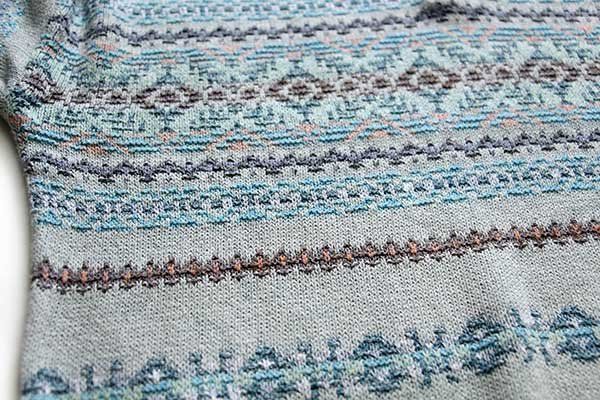 90s DOGMA フェアアイル柄 リネン混 コットンニット ポロシャツ 48 セーター ビンテージ ユーロ ヨーロッパ ジャガード 編み柄 パステル MEDICALDB_JP