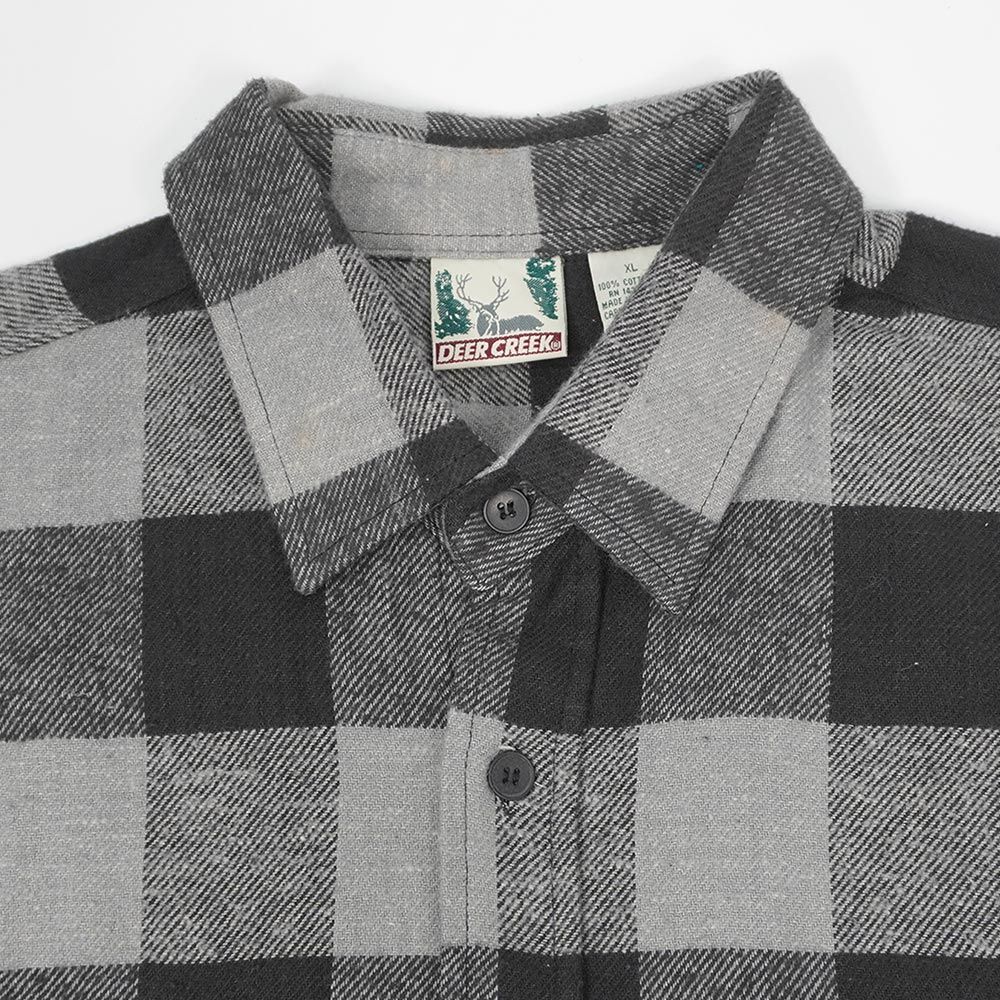 ディアクリーク DEER CREEK 未洗い 90s 90年代 ブロックチェック柄 ヘビーネルシャツ フランネル ビッグサイズ USA ヴィンテージ アメリカ 古着 メンズ シャツ ブラック × グレー XL MEDICALDB_JP