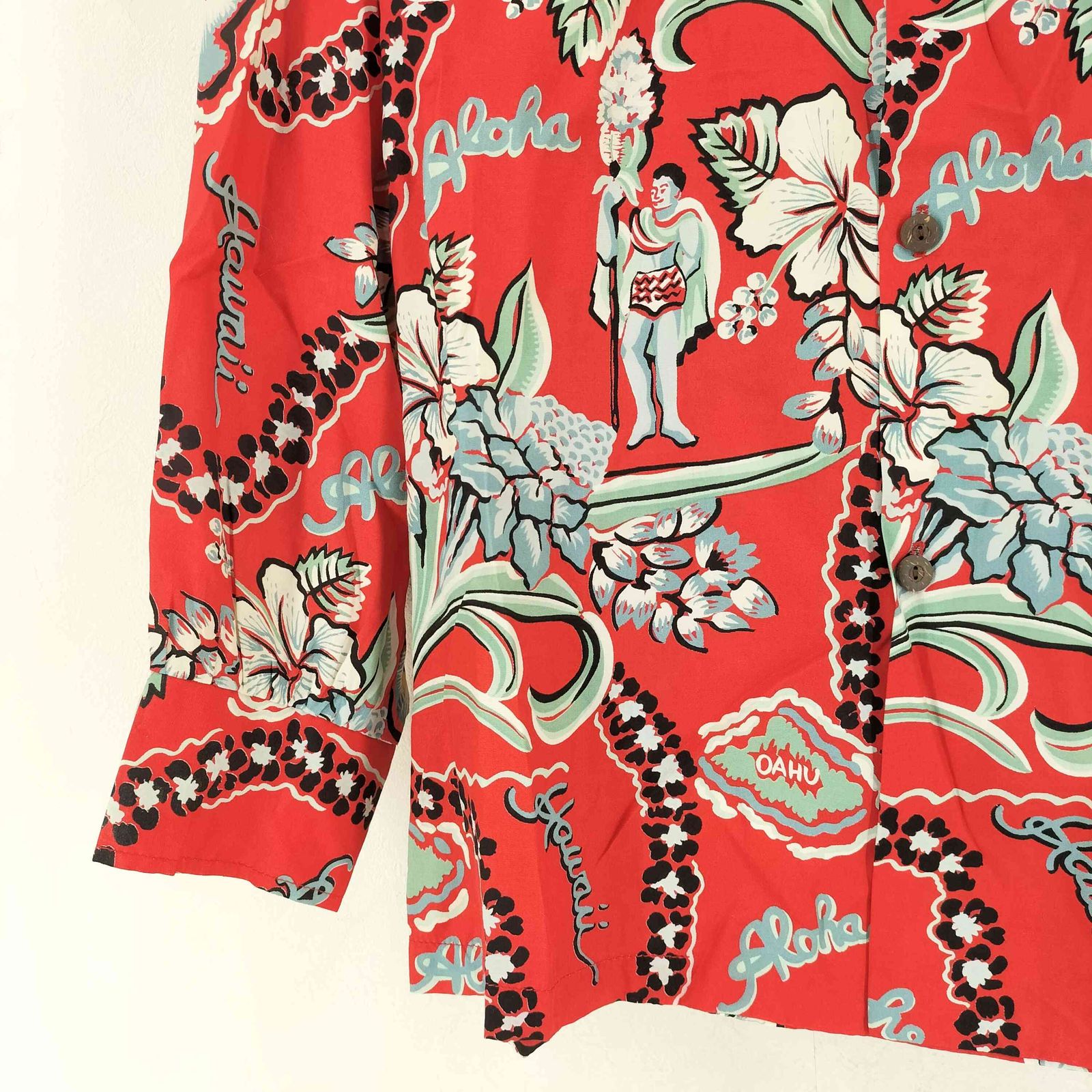 DELUXEWARE HAWAIIAN SHIRT AL-03 VINTAGE ART ハワイアンシャツ アロハシャツ オープンカラー 開襟 ヴィンテージアート セクシープリント ピンナップガール ショートスリーブ 半袖 Sサイズ アイボリー デラックスウエア