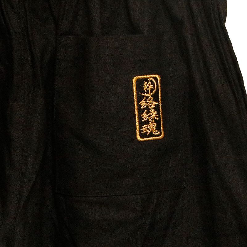 キョウエツ 作務衣 冬用 中綿入り 紬風生地 フリース裏地 16 メンズ M 黒