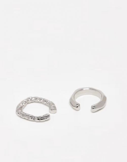 送料無料 エイソス メンズ ピアス イヤリング アクセサリー ASOS DESIGN 2 pack textured ear cuff in silver tone SILVER MEDICALDB_JP