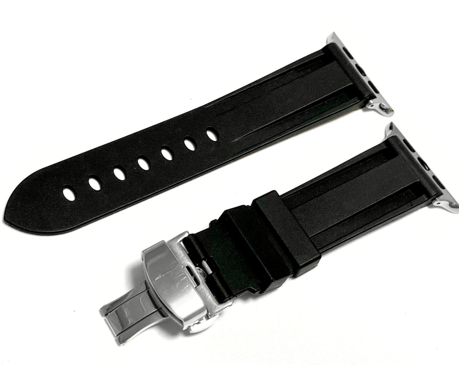 ホワイトブラック Apple Watch バンド ラバーベルト ステンレス316L メンズ レディース スポーツ 49mm45mm44mm42mm41mm40mm38mm