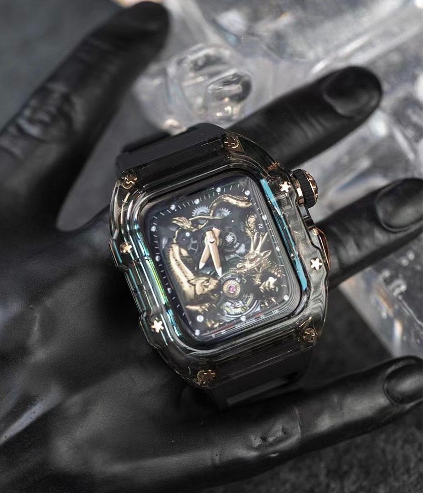 透明+黒 アップルウォッチバンド ラバーベルト カバー Apple Watch ケース 45mm. 44mm スポーツ