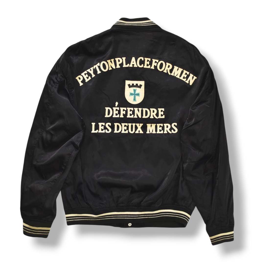 90s ヴィンテージ ペイトンプレイス フォー メン PEYTON PLACE FOR MEN スタジャン スタジアム ジャケット サテン ジャケット 総裏地 ジャンパー ブルゾン M ブラック メンズ MEDICALDB_JP