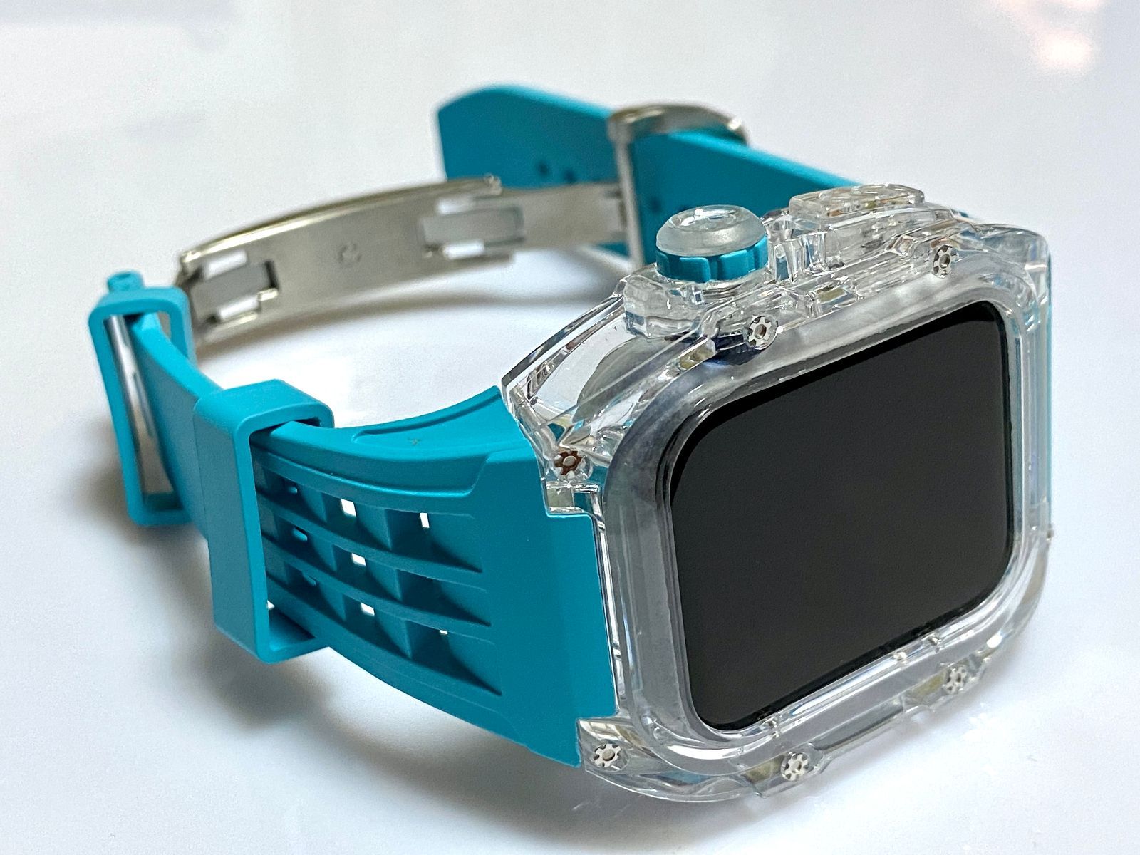 青 アップルウォッチバンド ラバーベルト カバー キラキラ Apple Watch クリア ケース 44mm 45mm スポーツ メンズ レディース MEDICALDB_JP