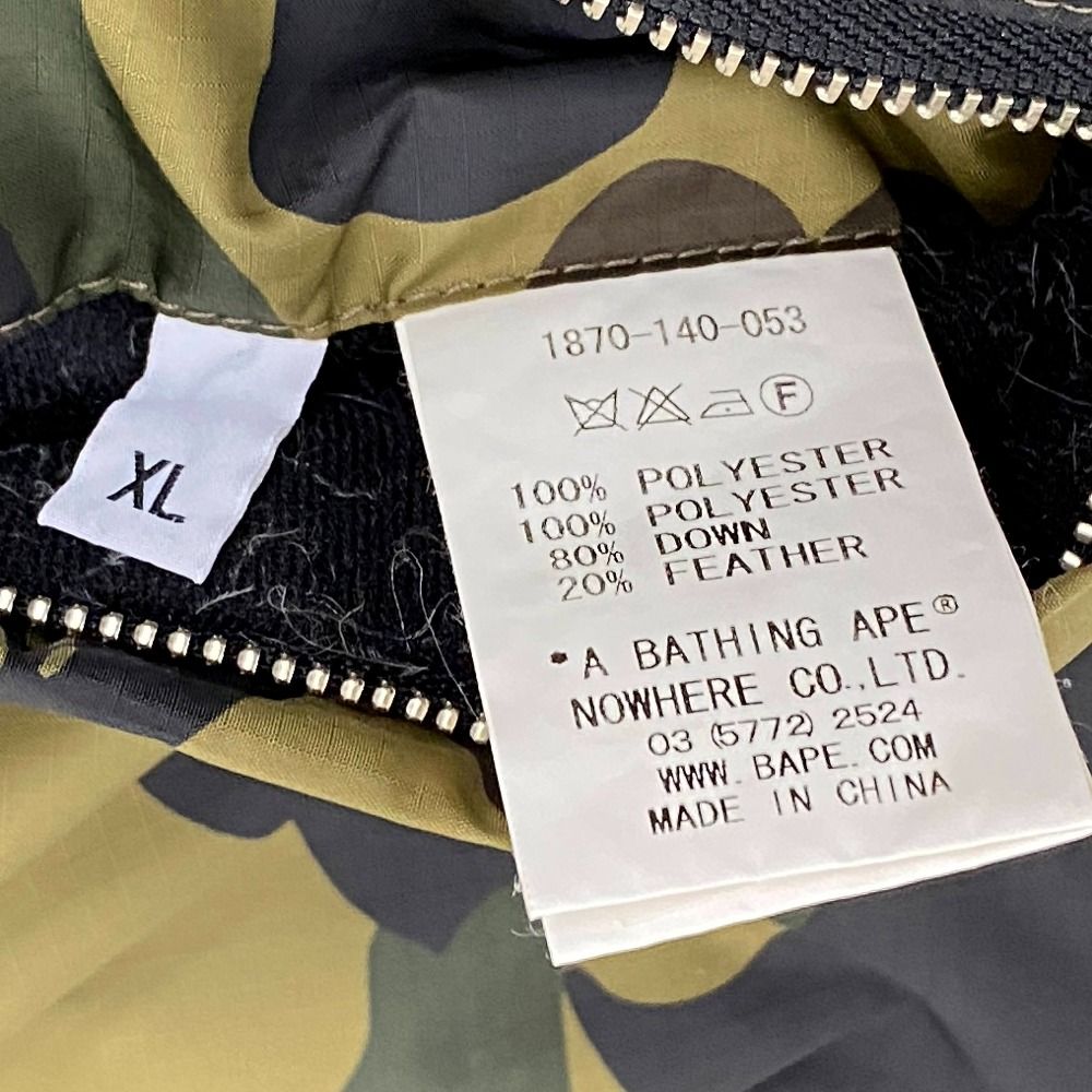 03w20880 A BATHING APE アベイシングエイプ リバーシブルダウンベスト 迷彩柄 カモフラ柄 カーキ系|ブラック サイズXL メンズ ストリート アウターの検索結果