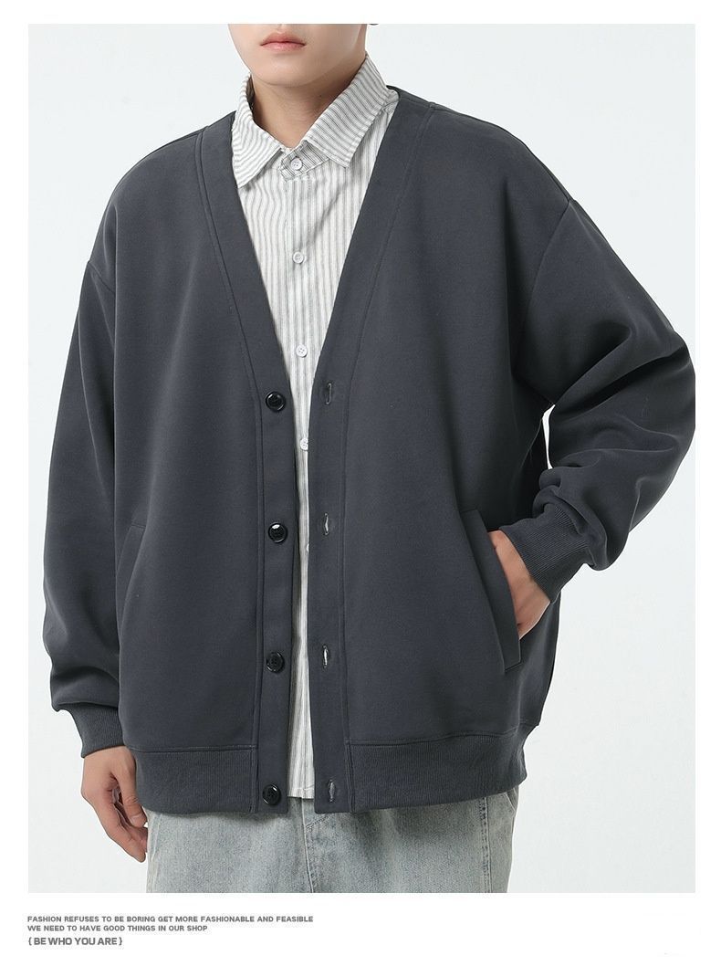 カーディガン ♥ スウェット Vネック 無地 春 秋 カットソー メンズ アウター ジャケット 羽織り ゆったり レイヤード トップス 長袖 体型カバー シンプル リラックス おしゃれ hjfs333 MEDICALDB_JP