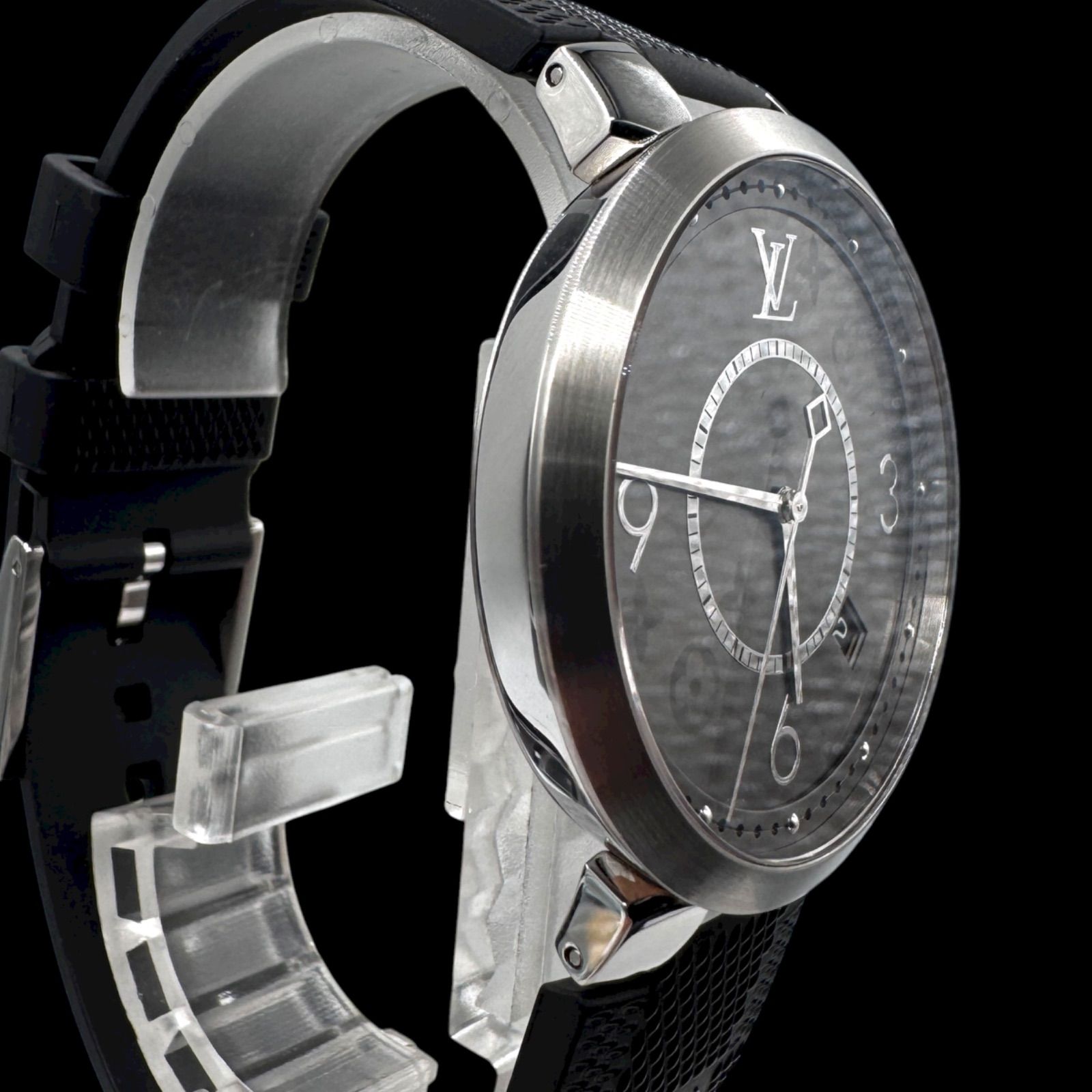 稼働 LOUIS VUITTON ルイヴィトン Q1DM0 タンブール モノグラム スリム エクリプス ダミエ ラバーベルト 3針 デイト シルバー ブラック クォーツ QZ MEDICALDB_JP