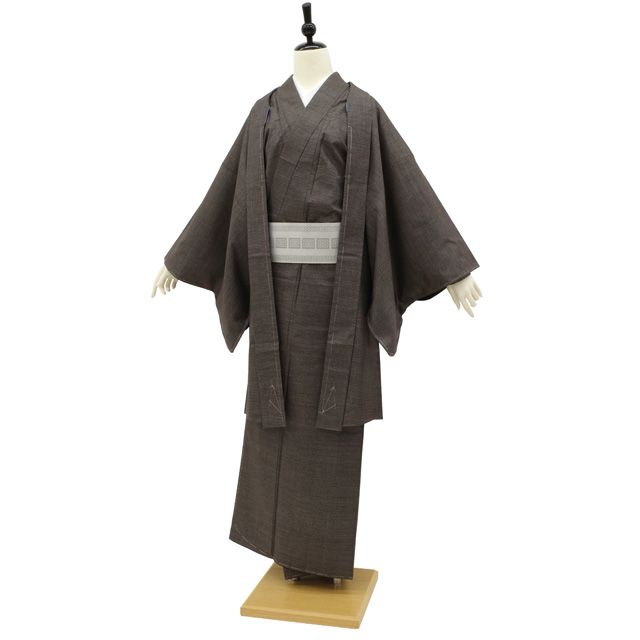平和屋着物●男性 紬 アンサンブル 色無地 褐返し色 正絹 AABB0398ph