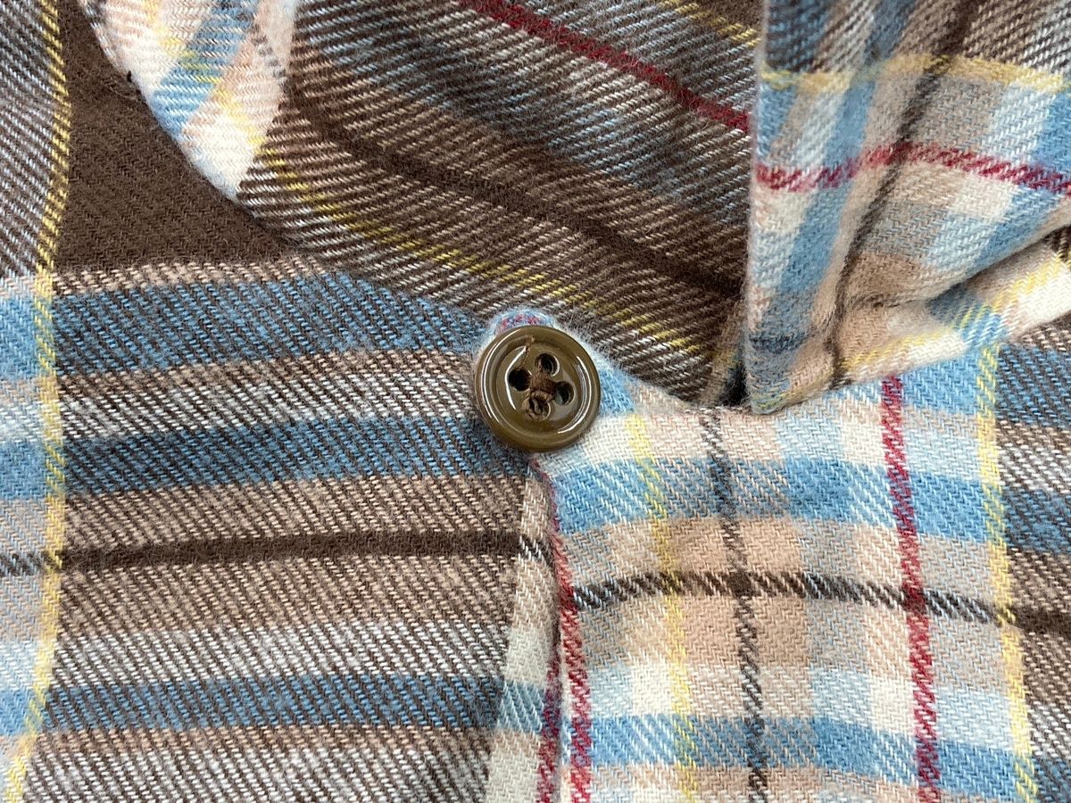 ♥ ジャンネット giannetto コットン チェック ワイドカラー ネルシャツ ブラウンベージュxグレー サイズS メンズ