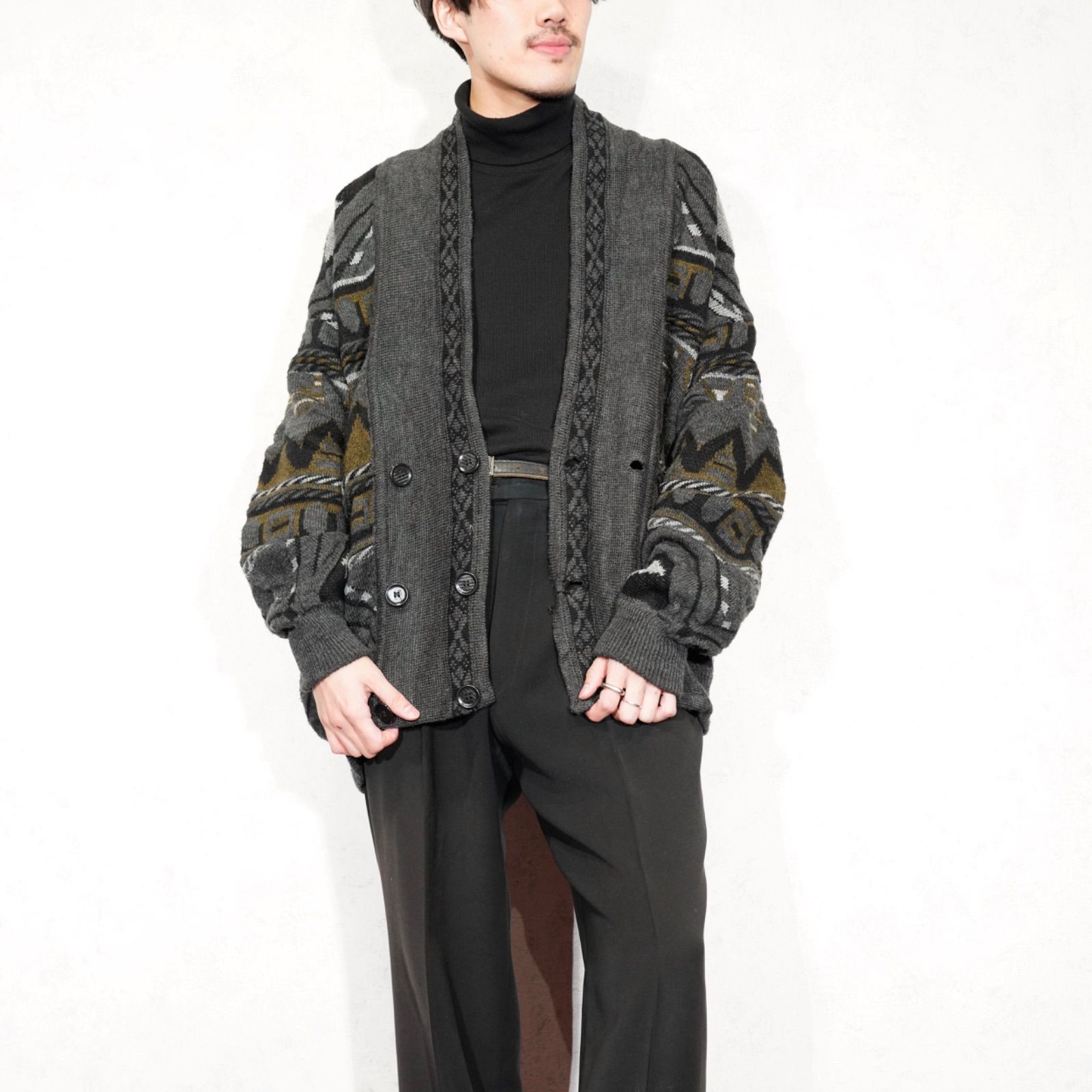 EU VINTAGE basic line casual wear PATTERNED DESIGN WOOL KNIT CARDIGAN|ヨーロッパ古着柄デザインウールニットカーディガン