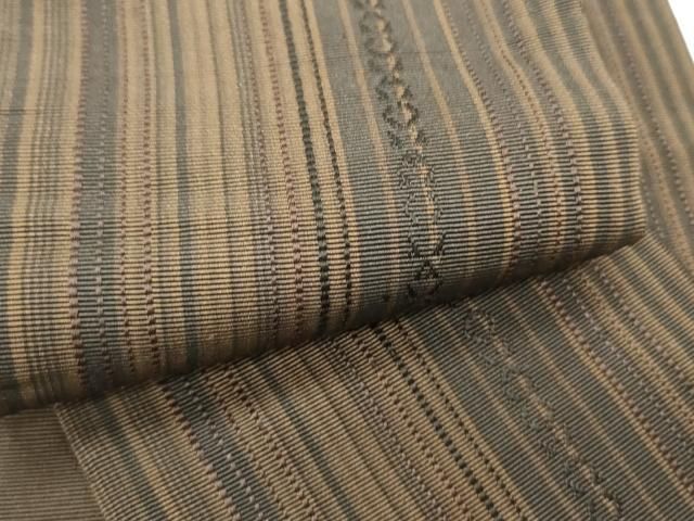 角帯 男性 正絹 博多織 カーキ 茶系 ベージュ系 地模様 宝尽くし 献上 着物 男物 浴衣 きもの ゆかた 和服 男帯 絹
