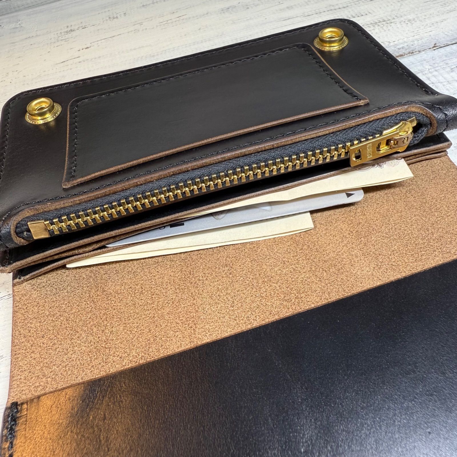 トラッカーウォレットミドル 3層 クロムエクセル ブラック 茶芯 ゴールド universalの検索結果