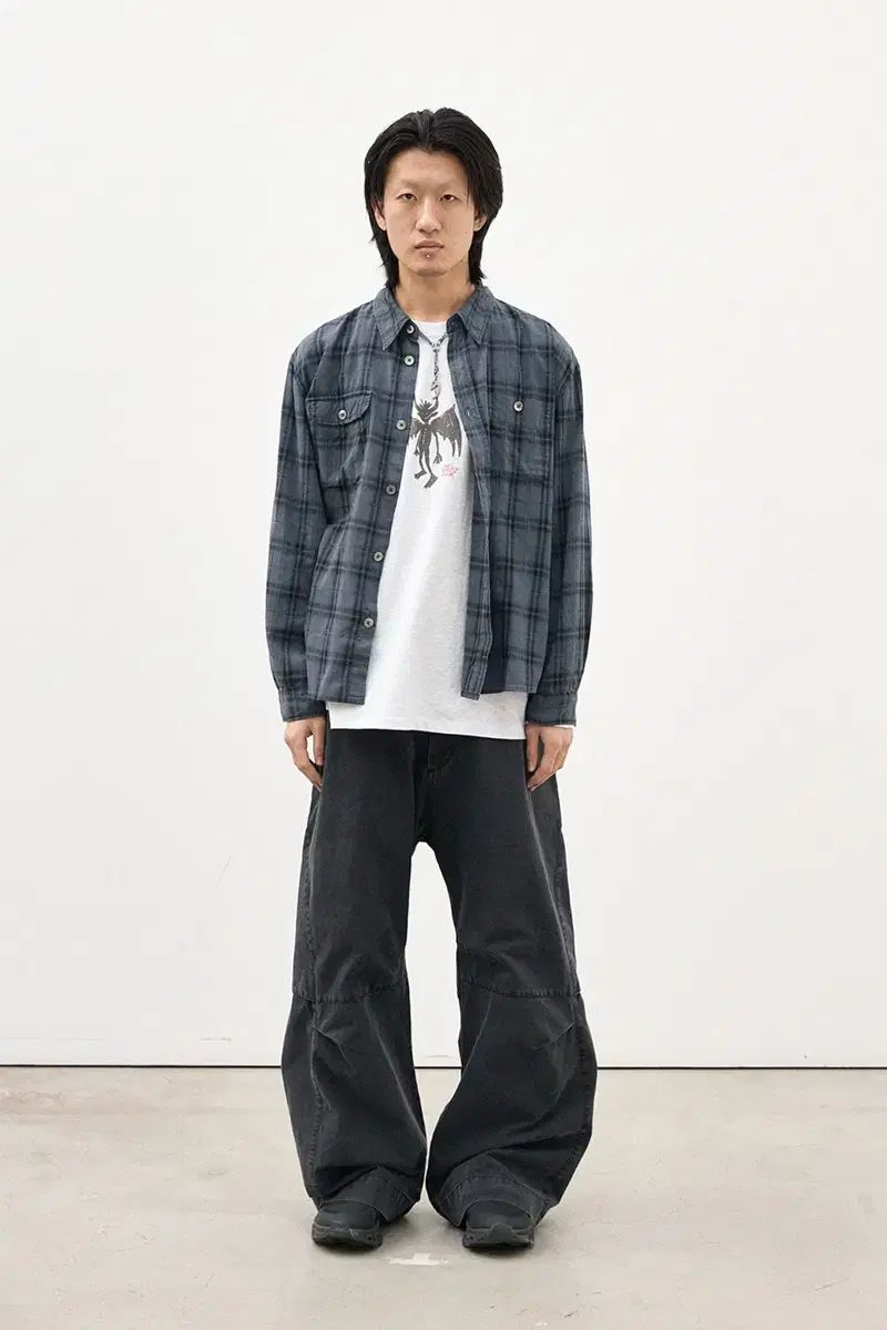 Yohji Yamamoto ヨウジヤマモト 24SS HS-B17-013 コットン 2WAY ダブルカラー ラグランスリーブ チェック柄 長袖シャツ ブラック 2 日本製 正規品 メンズ