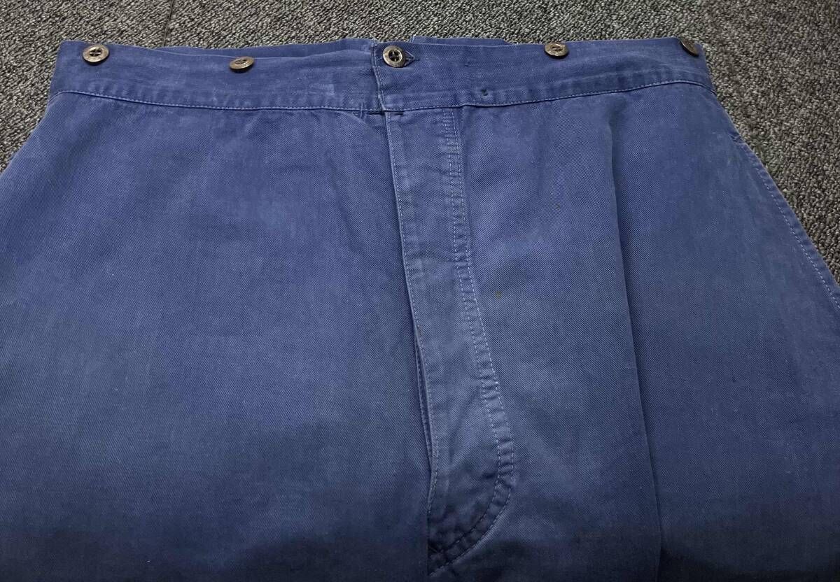 PTT ポストマンワークパンツ シンチバック 綿パン サイズ表記なし ボタン外れ有 ブルーの検索結果
