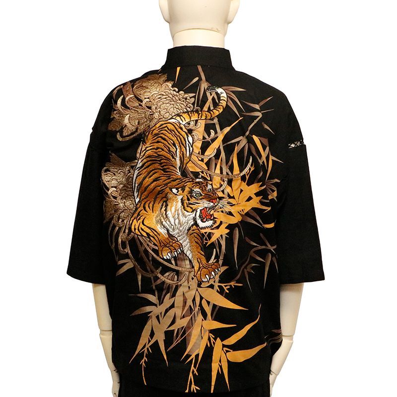 絡繰魂 粋 からくりだましい いき 信長の虎 柄 刺繍 和柄 甚平 252038 和柄 甚平 セットアップ SET UP 信長の虎 笹虎 虎 家紋 柄 刺繍 豪華 ブラック ホワイト 2柄展開 送料無料 MEDICALDB_JP