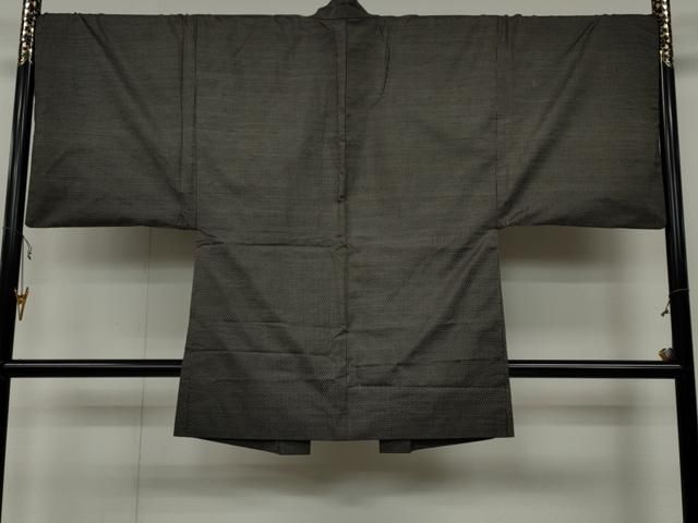 平和屋着物 上 男性 色無地 紋付き羽織セット 菱地紋 黒地 洗える着物 DZAA9352kh5