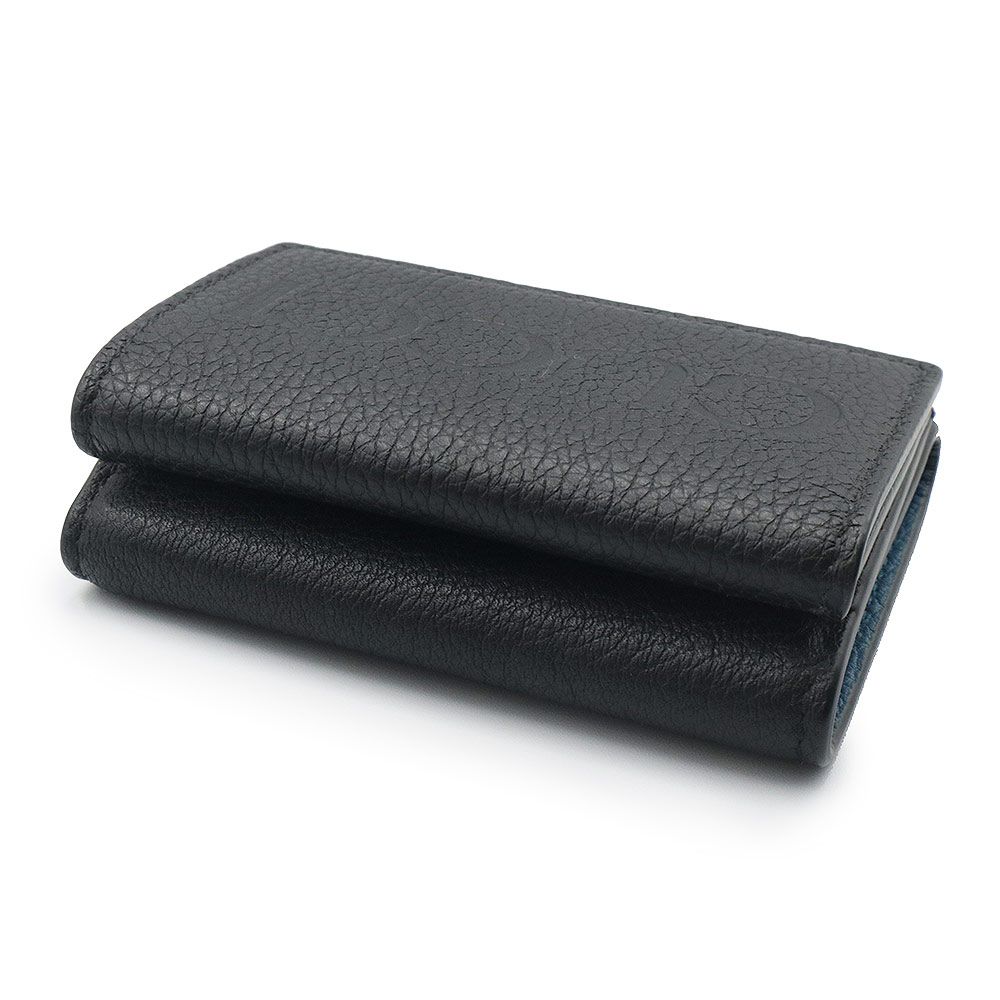 グッチ 日本 ロゴ ミニウォレット コンパクト 三つ折り財布 カーフスキン レザー ブラック ブルー シルバー金具 736151 GUCCI ♥品 MEDICALDB_JP