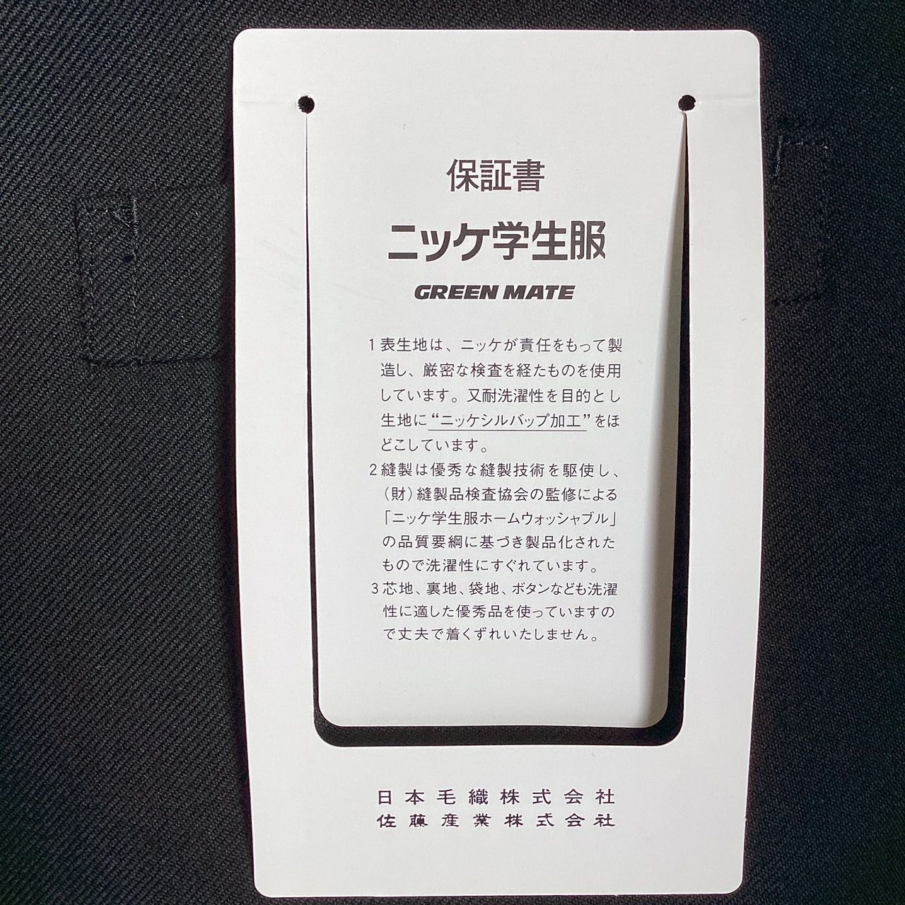 ♥品 混紡 黒サージラウンドカラー 学生服 上着のみ 学ラン 170AB N10090 毛50% ポリエステル50% 中学 高校 詰襟 NIKKE Green Mate ホームウォッシャブル